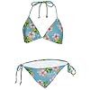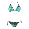 Kali Girlz string bikini includes a lined triangle top with a small detachable padding and a self tie in back and around the neck. The bottoms are string bikini style with a thin band at each hip and a full back.